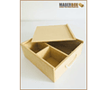 CAJA DE MADERA CON TAPA CORREDIZA PARA WHISKY Y 2 VASOS CON DIVISIÓN INTERNA O DESAYUNOS Y REGALOS SORPRESA